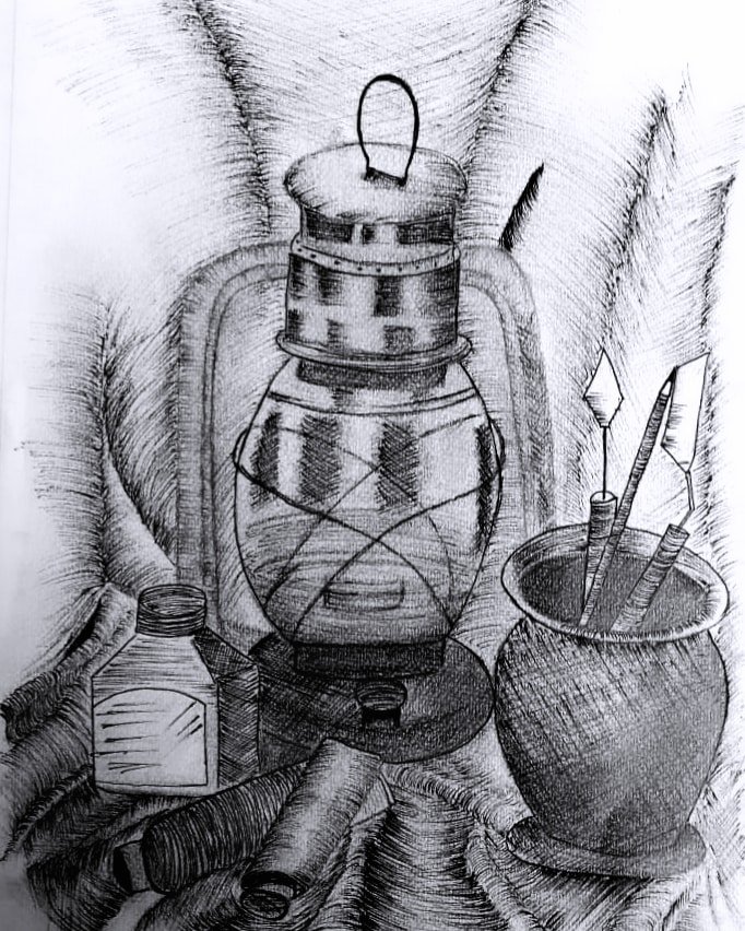 Experience the timeless elegance of black and white art with our exceptional still life sketch. Featuring a meticulously crafted composition of a lantern, ink bottle, and brushes, this artwork captures the essence of fine shading and detailed texture work. Perfect for connoisseurs of traditional artistry and those who appreciate the beauty of simplicity, this sketch is an ideal piece for your home, office, or personal collection.