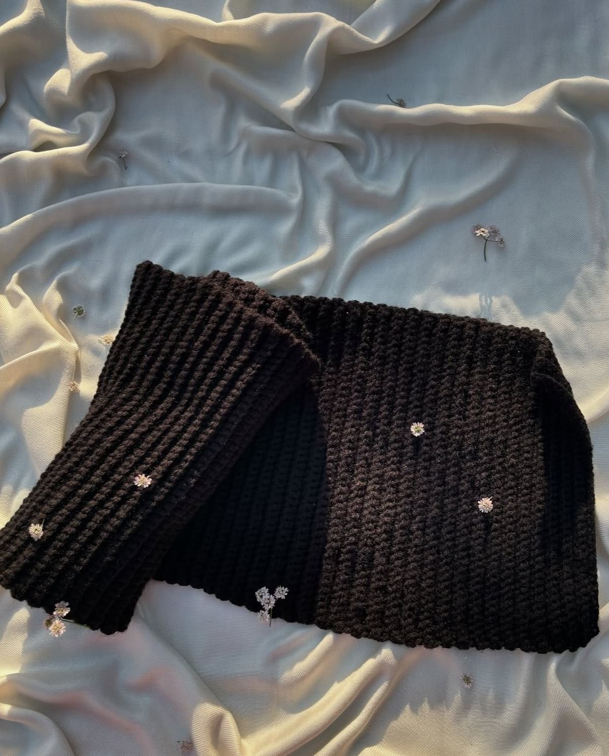 The Black Ribbed Crochet Top adorned with small white embroidered flowers blends artistry with versatility, giving you the perfect balance of charm and sophistication. Whether you’re dressing for a casual outing or a special gathering, this exquisitely crafted crochet top is a statement piece ready to elevate your wardrobe. With its thoughtful detailing and premium design, this crochet top showcases the very best of handmade fashion, giving you a one-of-a-kind look.