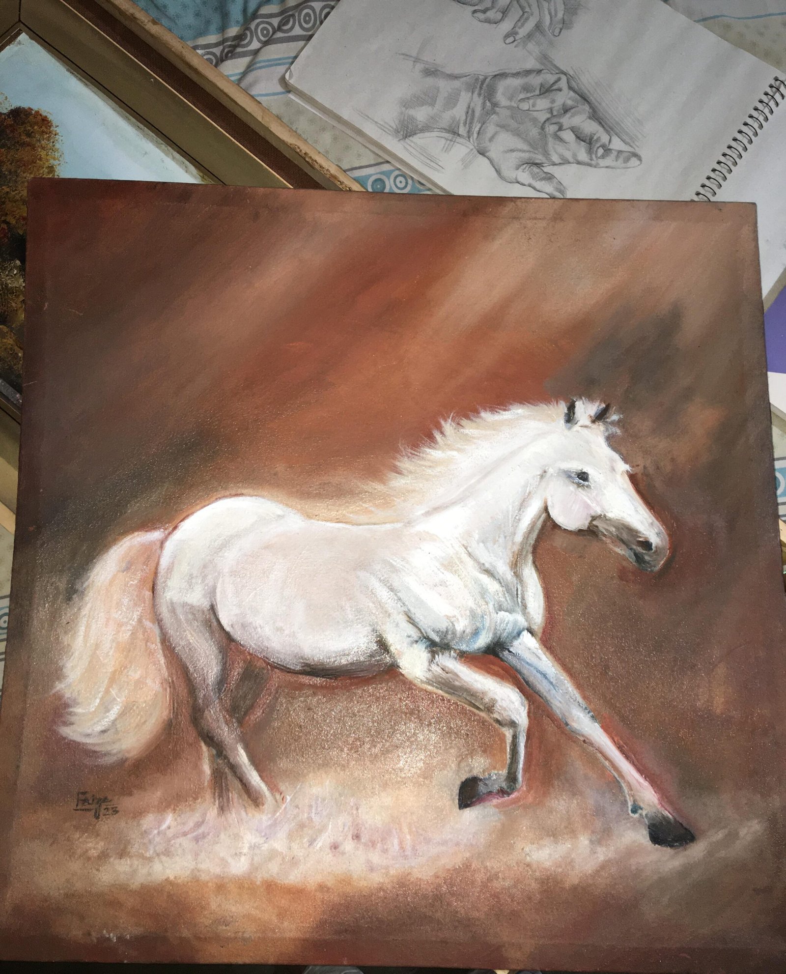 Realistic White Horse Canvas Painting